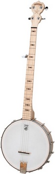 Made by the folks at Deering in California (that's right this banjo is made in the USA!), this is a perfect banjo for a beginner, oldtime player or anyone looking for a less expensive quality banjo to travel with, droptune or have for recording. Weighing in at a mere 4 pounds, its perfect for children too! Built by the same expert builders who make the most sought after banjos in the world, this piece features a rock maple neck with bow tie inlays that is both slender and easy to finger, a maple rim for that bright crisp tone, and adjustable tailpiece and action to dial in mellowness or brightness. For this kind of money, you can't find anything near this quality. It's too cool not to have! so get one today!